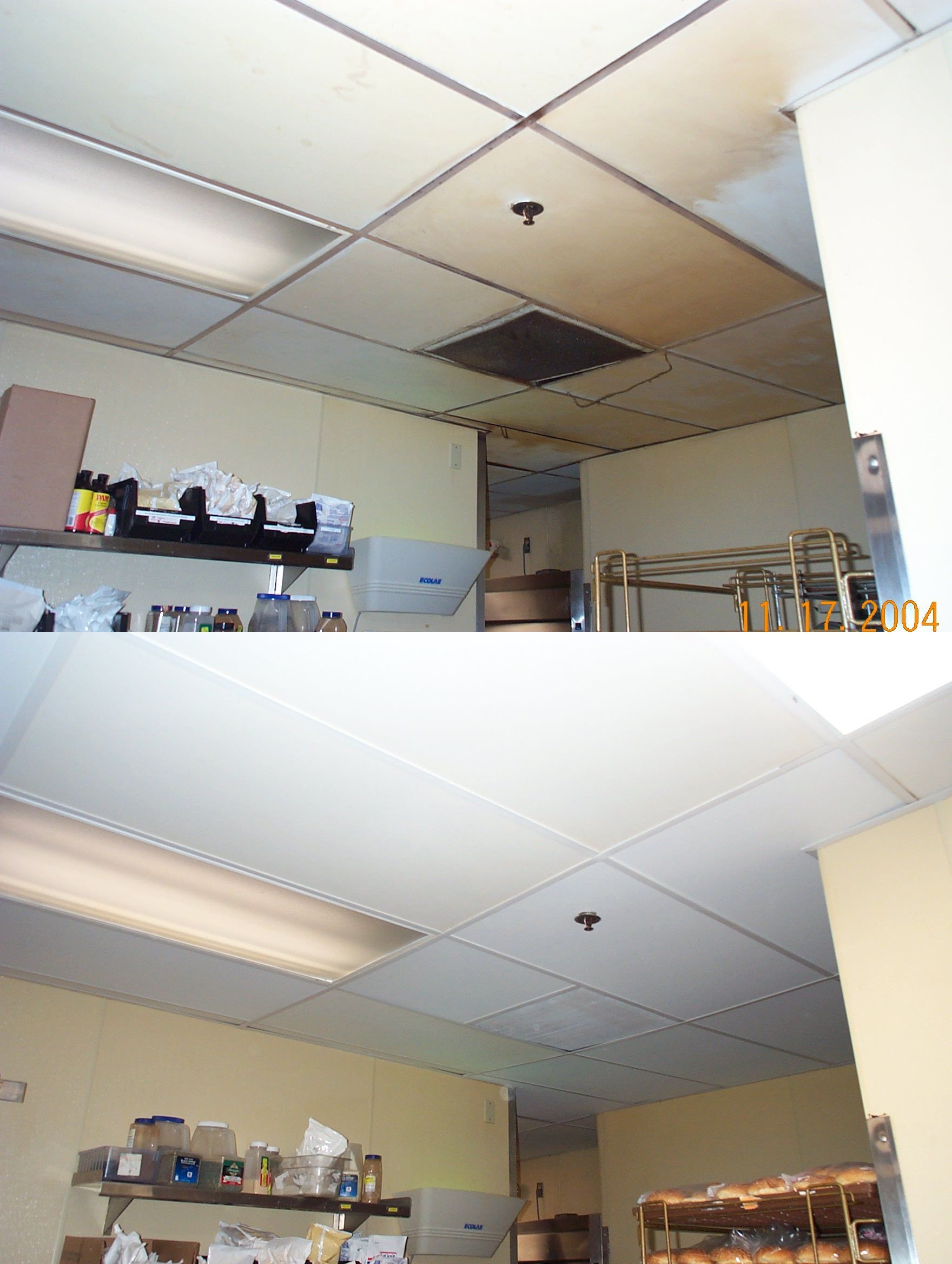 - We are a service company that cleans and restores ceilings. Much of our work is with acoustical and vinyl tile drop-ceilings but we can handle any type. Most of our clients are restaurants and bakeries that use us on a routine basis to keep their kitchen and dining ceilings clean and maintained.